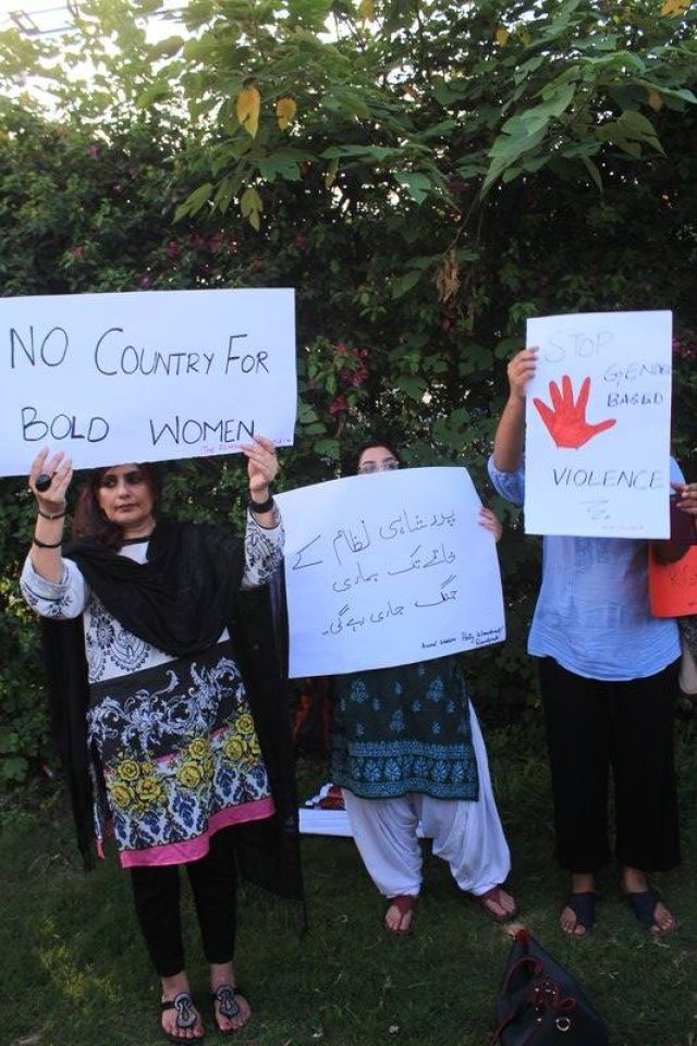 Protestors gathered in front of the national press club in Islamabad on July 18 in solidarity with Qandeel Baloch, who was brutally strangled by her brother, and the thousands of women who are killed everywhere in Pakistan for defying the patriarchal straitjacket. The protest, organised by the Awami Workers Party included members of the Women's Action Forum, the Feminist Collective, and Insaani Huqooq Ittehad–as well as allies of women and opponents of anti-woman violence from around Rawalpindi and Islamabad.