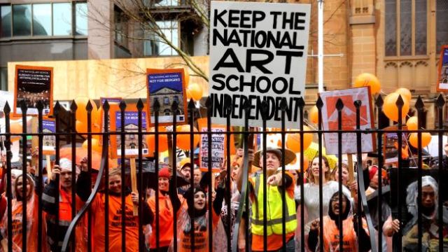 Sydney's Oxford Street was shut down on August 24 by hundreds of people protesting moves to absorb the National Art School into the University of New South Wales.