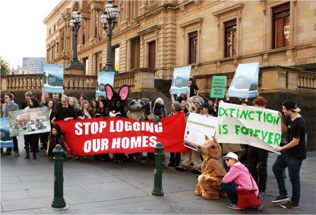 Environment groups Goongerah Environment Centre (GECO), Wildlife of the Central Highlands and Fauna and Flora Research Collective decided to commemorate the day this year by presenting an invoice for $2 million to the state government.