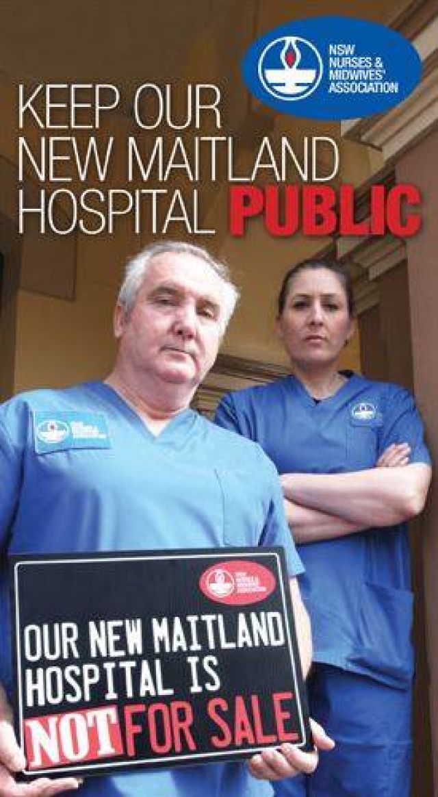 [People in the Hunter are urged to show their support to keep the new hospital public by joining the rally at noon on Sunday October 23 at Maitland railway station, Church Street, Maitland, and then march to Maitland Park.