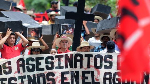 Violence and impunity have also resulted in civil rights activists losing their lives. One example is indigenous environmentalist activist Berta Caceres, who was shot at her home in the western town of La Esperanza in March. Another is Jose Angel Flores and Silmer Dionisio George, two activists fighting for land rights who were both shot as they left a meeting in Tocoa in the country’s north-east on October 18.