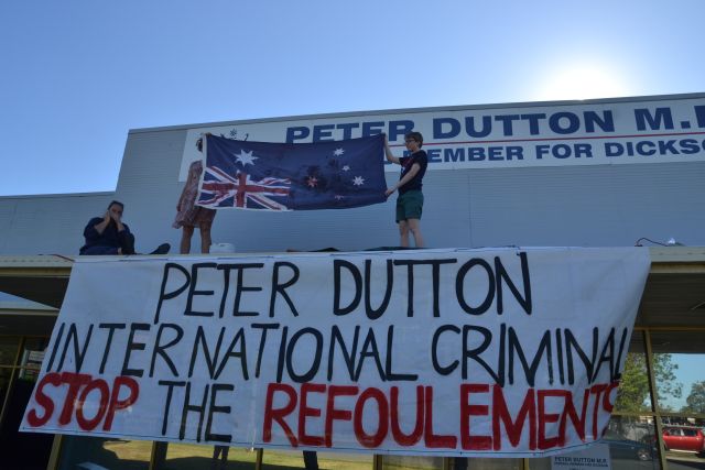 Three activists scaled the roof of immigration minister Peter Dutton’s Brisbane electorate office on November 2 to protest the government’s proposed new immigration law.