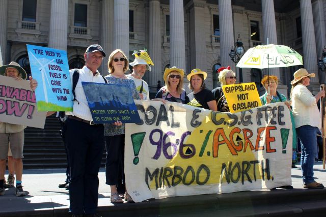 Coal and CSG Free Mirboo North led the community campaign against new coal projects in the region. They conducted a door-to-door survey in 2014 asking residents: “Do you want to declare this area coal and gasfield free?” A resounding 96.7% said yes. A community declaration followed in which the people removed the social licence for any new brown coal mining in the area.