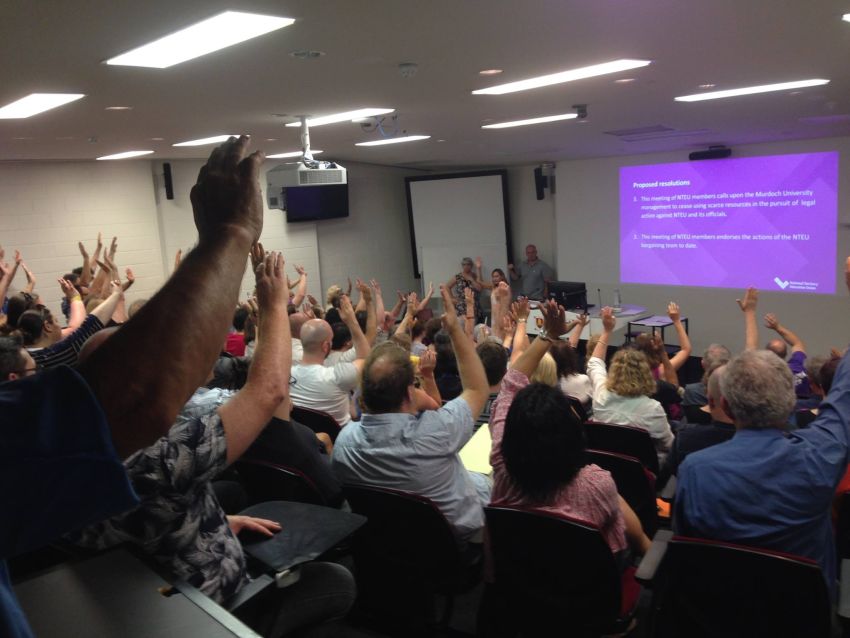 Murdoch University staff voted no confidence in the University's bargaining team on November 25. Photo credit: NTEU WA Division.