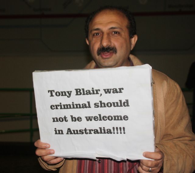 Tony Blair is a war criminal for both the wars in Iraq and Afghanistan where he has being responsible for the killing of over a million people, as well as supporting the apartheid regime in Israel.