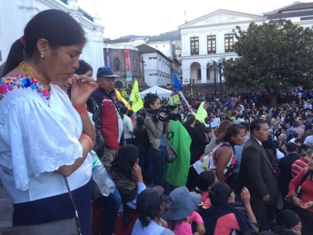 “We are here not only to defend the president but also this political process, which emerged from the popular classes,” said Alejandro Aguilera, a supporter of the Communist Party of Ecuador, which backs the Correa government.