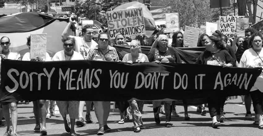 Nine years since Kevin Rudd’s apology to the Stolen Generations, where he promised the atrocities of the past would ‘never happen again’, more Aboriginal children are being forcibly taken from their families by welfare agencies in numbers far higher than any time in Australia’s history. Protest organised by Grandmothers Against Removals (Sydney Branch).