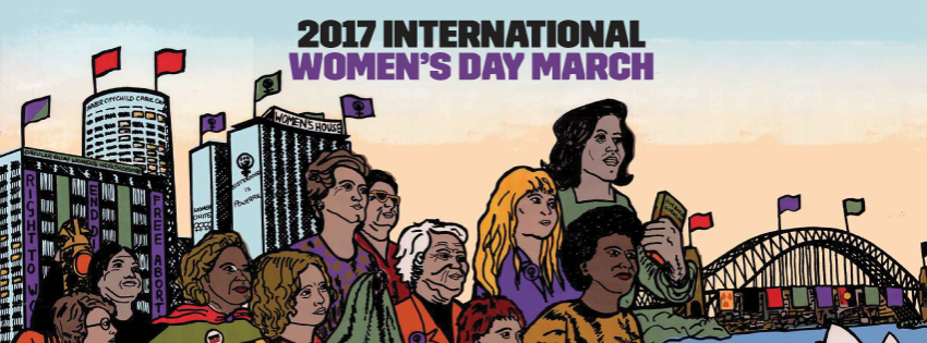 March for equality for women, and end to violence against women and against sexism. March to Tumbalog Park, Darling Harbour.