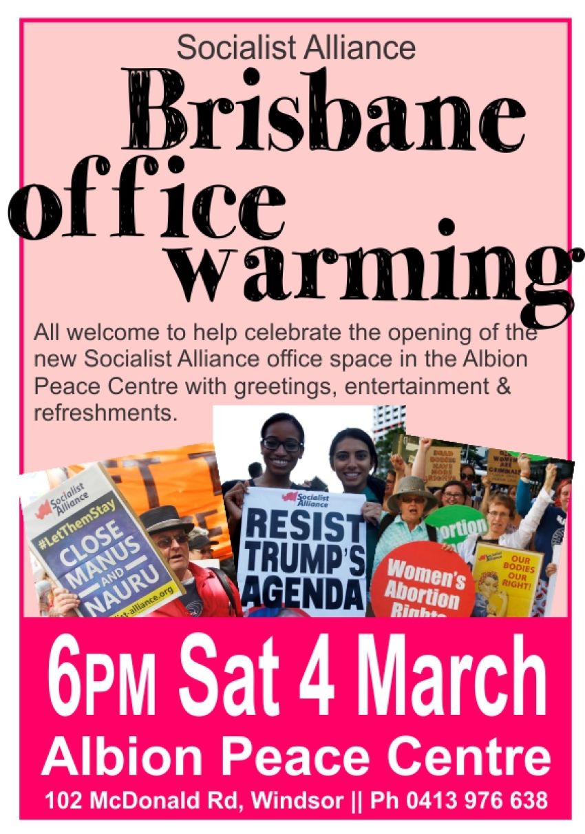 Help warm the new Socialist Alliance office with greetings, entertainment & refreshments.
