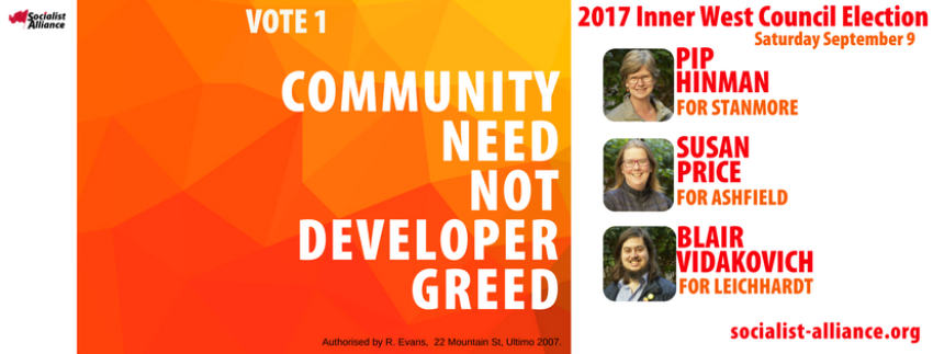 Launch of the Socialist Alliance campaign in the Inner West Council elections (Sept 9). It will be a fundraiser so please bring a plate to share. Drinks available. Entry by donation.