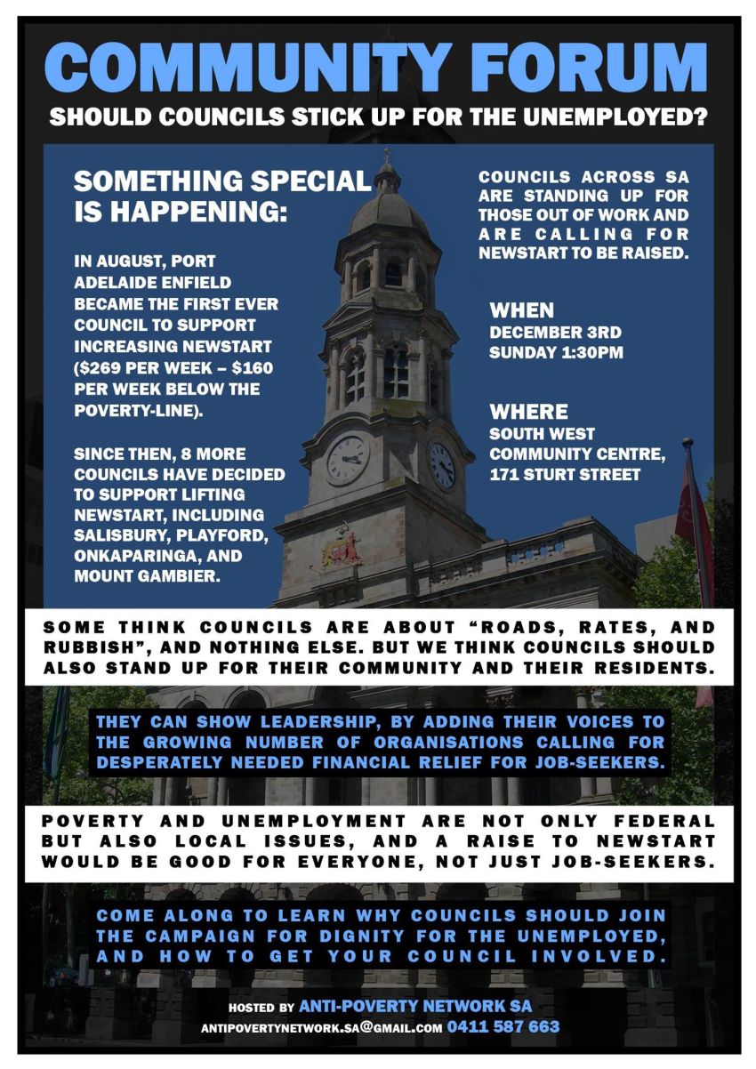 Something special is happening: Councils across SA are standing up for those out of work, by calling for Newstart to be raised.