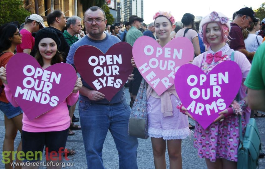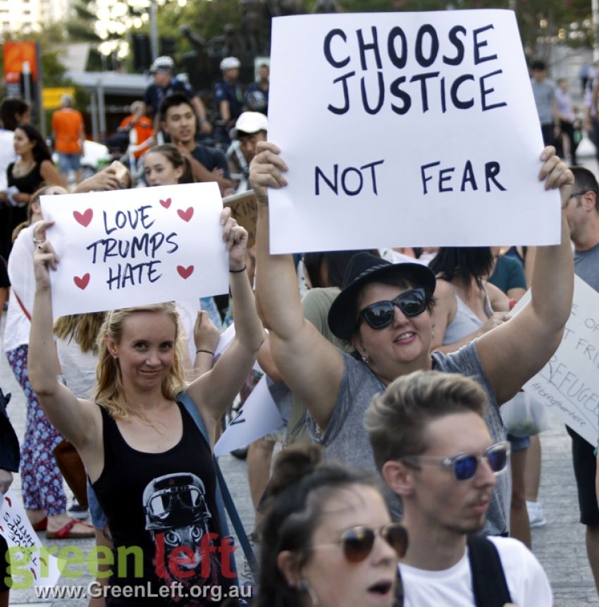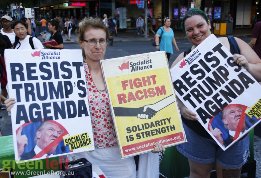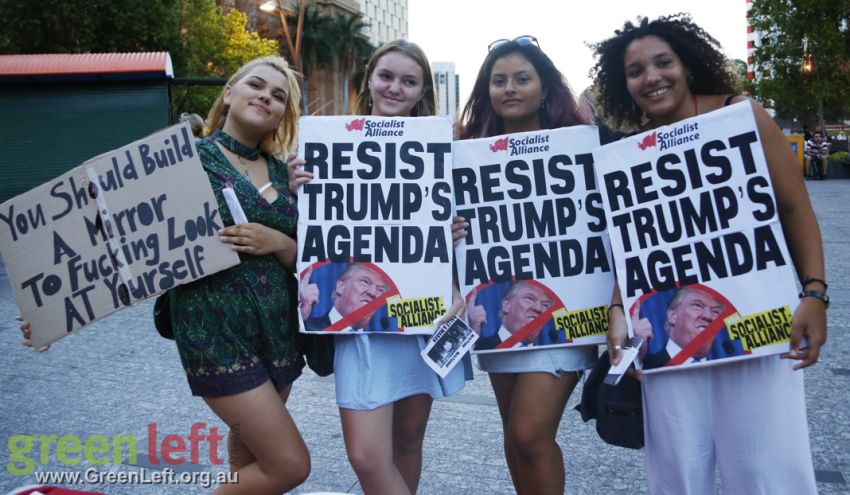Hundreds rallied and marched through the streets of Brisbane on February 3 to join the global protests against the agenda of incoming US president Donald Trump.