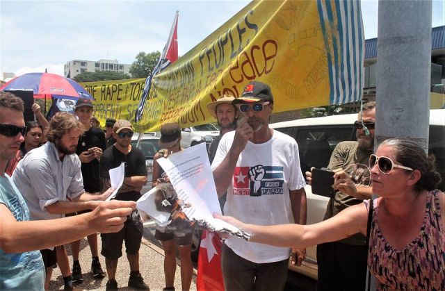 Maritime Union of Australia NT secretary Thomas Mayor pledged the MUA’s help to grow the campaign for a Free West Papua. The rally burned a copy of the Lombok Treaty.
