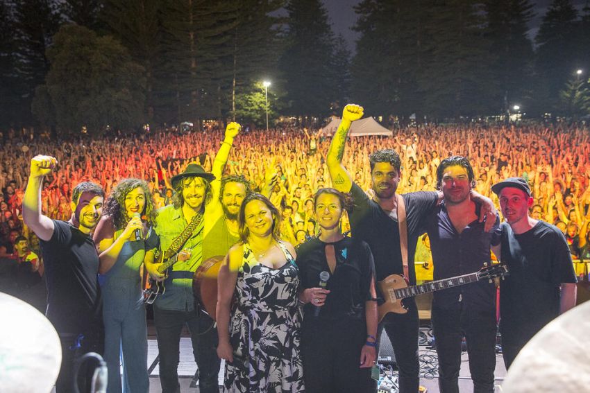 A great family atmosphere and harmony filled the Esplanade Park as 15,000 people enjoyed the “One Day” concert in the afternoon and early evening. A highlight was John Butler, Dan Sultan, Muma Kin and Gina Williams singing an amazing rendition of Paul Kelly and Kev Carmody’s From Little Things Big Things Grow, with thousands singing along as the sun set over Bathers Beach and the Esplanade.
