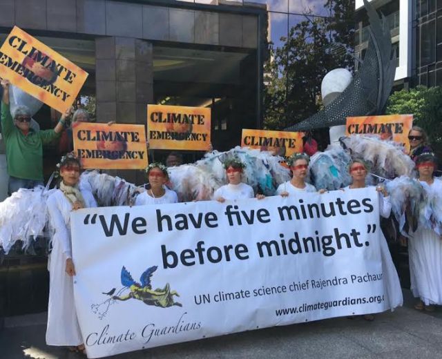 The feature act was a local artistic group, the Climate Guardians, who appear at many climate protests. They dress as angels to highlight the threat of climate change. The group attained international prominence during the 2015 Paris Climate Talks with their striking imagery.