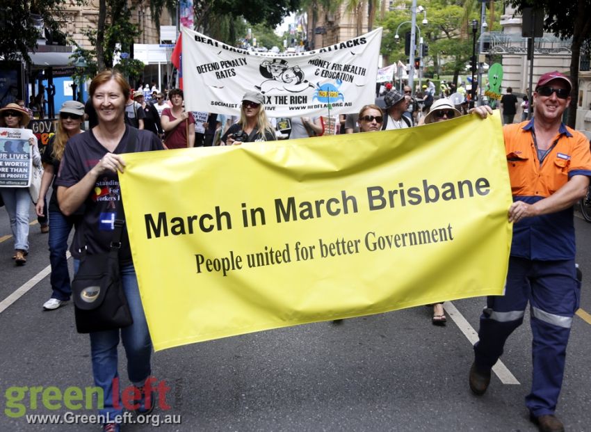 Alomst 200 people marched through Brisbane on March 25 as part of the March in March mobilisation.