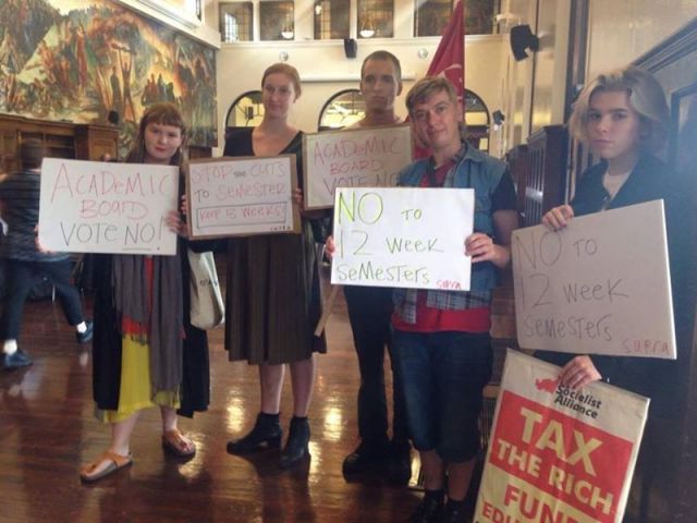 Students and staff are celebrating the defeat of Sydney University’s attempt to cut semesters from 13 weeks to 12. After almost no consultation with students or staff, the university attempted to push through the move at the Academic Board meeting on March 28.