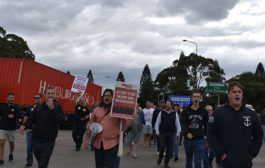The protesters were supporting of waterside workers at Patricks who are standing up to the company's attempts to de-unionise a section of the terminal.