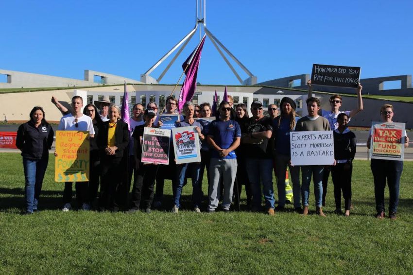 Student groups nation-wide registered their opposition to the government’s proposals to raise student fees and lower the HECS threshold at an action in Canberra on budget day on May 9.