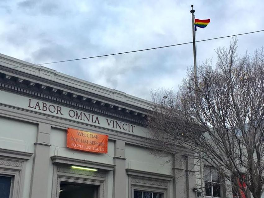 On June 27, Geelong Trades Hall Secretary Colin Vernon along with other union and community activists raised the rainbow flag at Trades Hall in support of marriage equality.