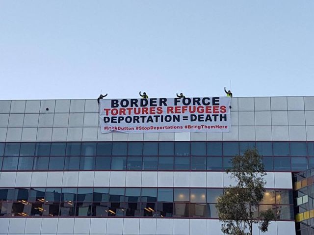 Refugee activists from the Whistleblowers, Activists and Citizens Alliance (WACA) hung a banner off the Channel 7 building in Melbourne’s Docklands on June 23.