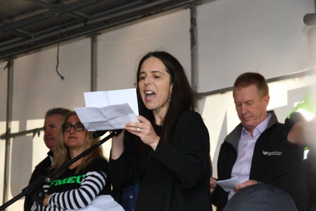 Comrades, I stand here today representing members of my union, the mighty Finance Sector Union. We stand in solidarity with our Construction Forestry Mining Energy Union (CFMEU) brothers and sisters and with all the other unions represented here, because it doesn’t matter if you’re a bank teller or a concreter, call centre worker or a form worker, a branch manager or a labourer, the laws are broken for all working people.