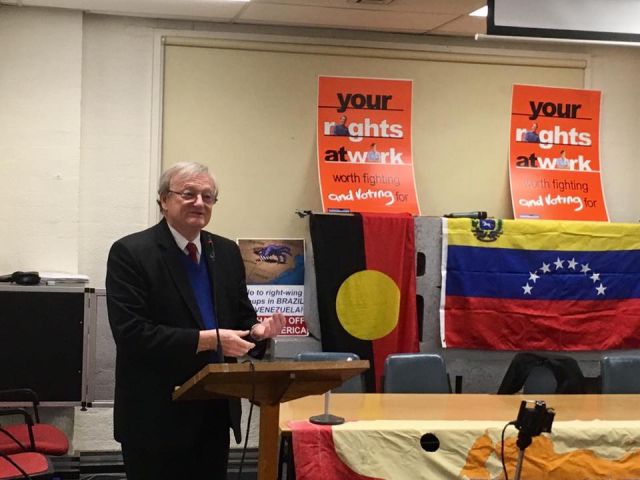 The Sydney meeting was sponsored by the MUA Sydney Branch, the Latin American Social Forum (LASF), the Australia-Venezuela Solidarity Network (AVSN) and the Venezuelan Embassy.