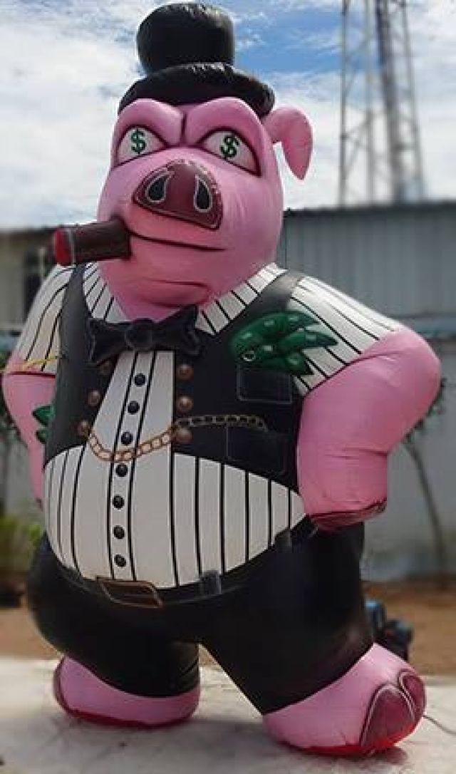 Esso Longford workers have revealed the latest mascot in the fight for jobs at the company’s Gippsland gas plant. With Scabby the Rat banned by a Federal Court order, Greedy the Pig has stepped in to continue the struggle.