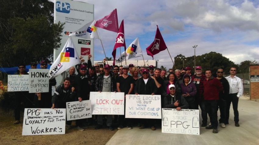 PPG workers have been picketing outside the Villawood plant during the lock-out. The company has brought in labour-hire staff while the dispute continues.