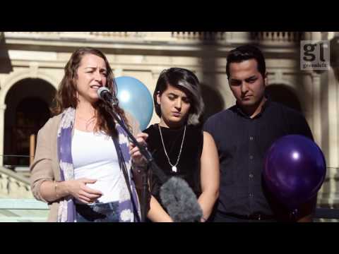 Jessica Walker from Teachers For Refugees speaks at the Brisbane world refugee day rally and tells immigration minister Peter Dutton that Mojgan will not be deported.