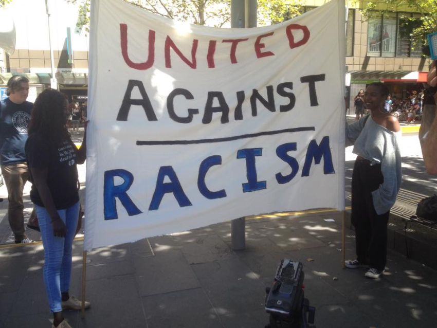 Hundreds of people attended a rally in Melbourne's CBD on February 4 to protest racist media coverage and treatment at the hands of the police and politicians.