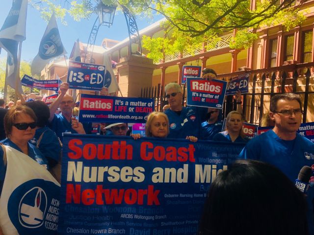 The NSW Nurses and Midwives Association (NSWNMA) called on the state Coalition government to introduce mandated, shift-by-shift, nurse-to-patient ratios, with one nurse for every three patients in emergency departments and paediatric wards, and one nurse for every four patients in medical and surgical wards.