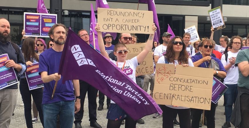 A protest against staff cuts at Sydney University on October 3. Photo: @NTEUNSW