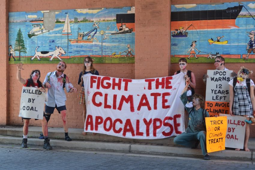 Zombies raised concerns over climate change on Halloween in Newcastle. The demonstrators sought to raise awareness about the coming “climate apocalypse.”
