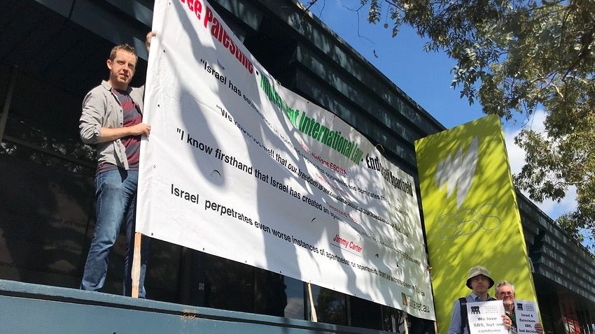 Protesters gathered outside the SBS offices in Artarmon on November 15 to urge the national multicultural broadcaster not to screen Eurovision 2019, which will be held in Israel.