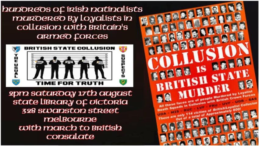 Lies, cover-up, collusion, shoot to kill and state murder are britain's story in Ireland. Join us as we rally to call for an end to the continous cover-up of british state murder and collusion in the north of Ireland.