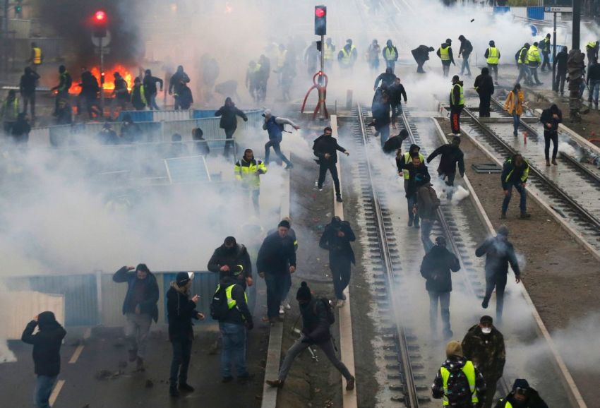 Police mobilised across the capital and used tear gas and water cannons as clashes broke out near the Arc de Triomphe in Paris. There were 244 people arrested across the country.