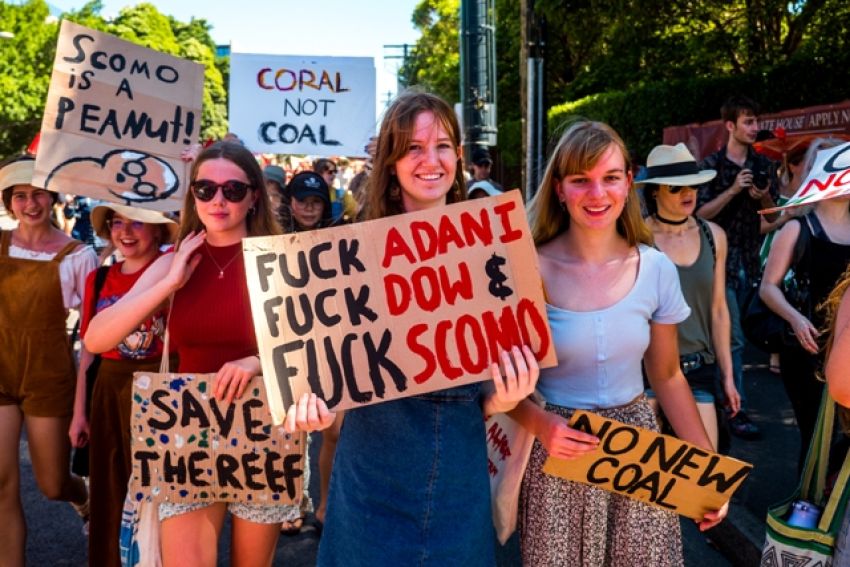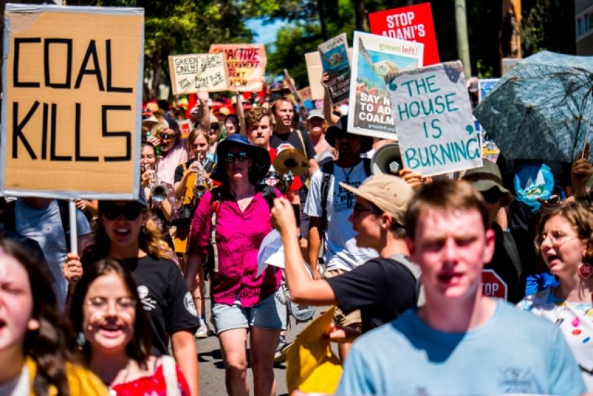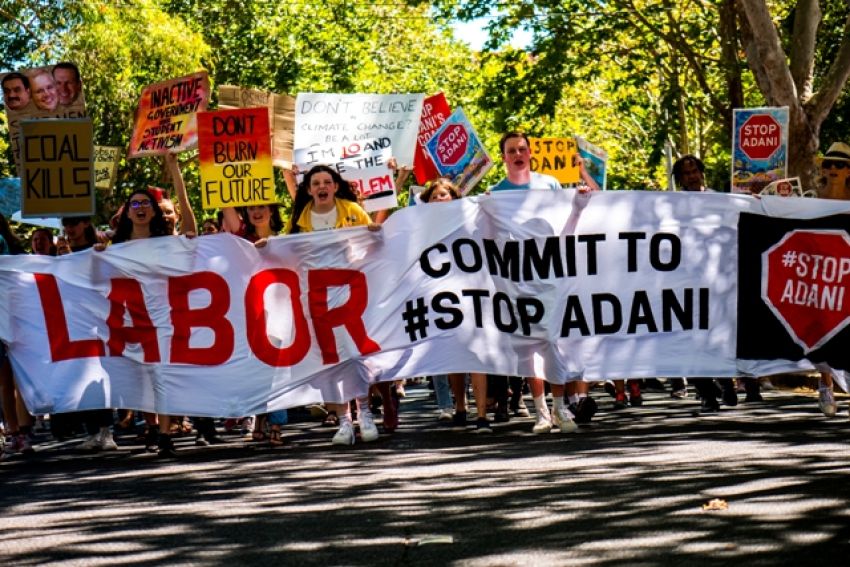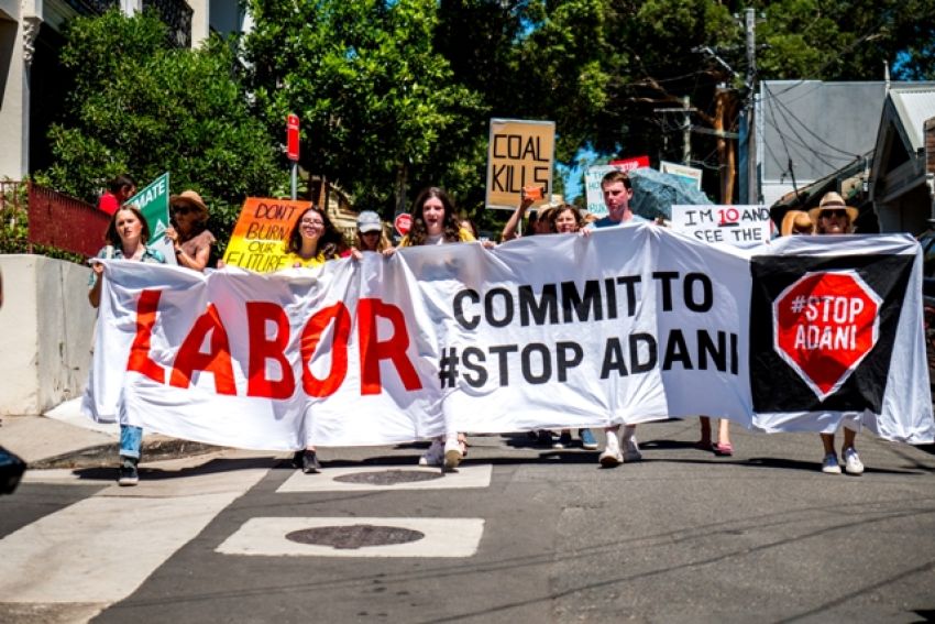 Hundreds of people marched through Newtown, Sydney, against Adani’s proposed Carmichael mega coalmine in Queensland’s Galilee Basin, on February 17.