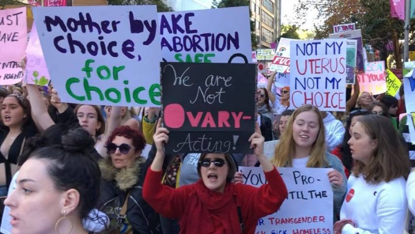 The overwhelmingly young and diverse crowd had responded to the callout to bring creative signs making the point. They included: “My body, My choice”, “Abortion is healthcare”, “Keep your filthy paws off my silky drawers” and “Ovary-acting? I think not”, “Don’t fuck with my freedom”, “Mind your own uterus! Oh wait, you don’t have one”, and “Keep abortion safe and legal and accessible”.