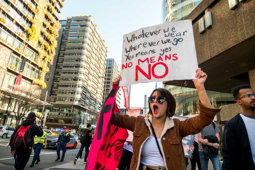 University students and supporters rallied in Sydney on August 20 against sexual violence on university campuses as part of a national day of action.