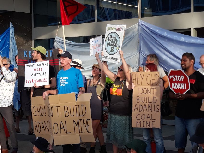 Protesters demanded that GHD live up to its stated commitment to sustainable development by pulling out of working with Adani on its Carmichael coal mine in Central Queensland.