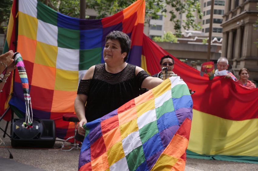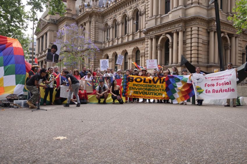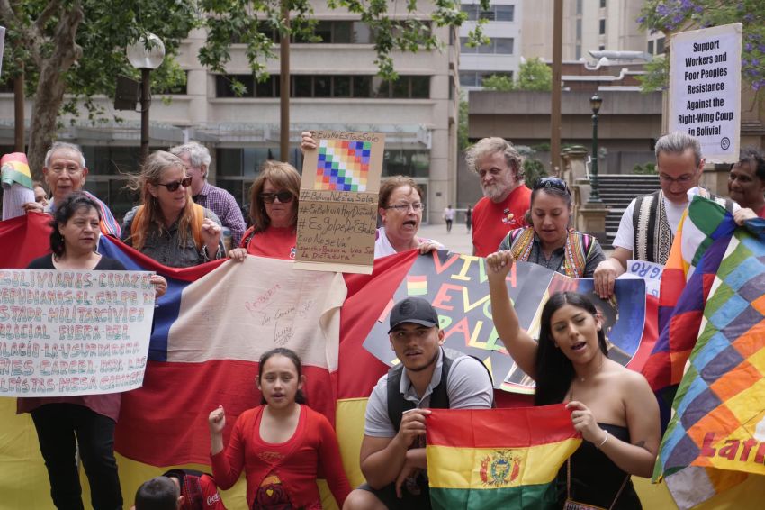 Members of the Bolivian community and Latin America solidarity activists rallied in Sydney on November 17 to oppose the coup against Bolivia’s first Indigenous President Evo Morales.