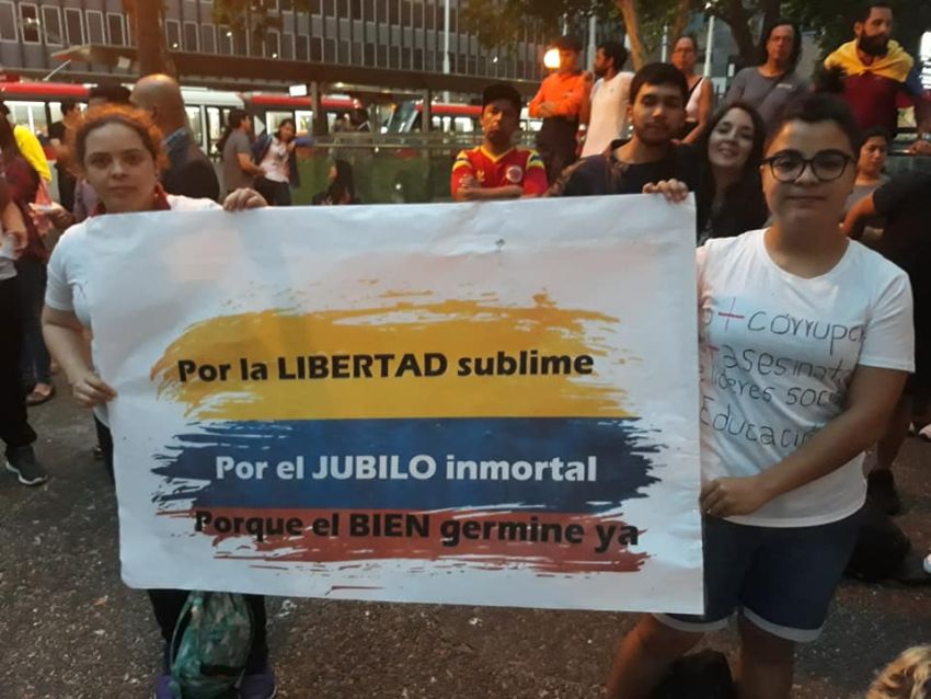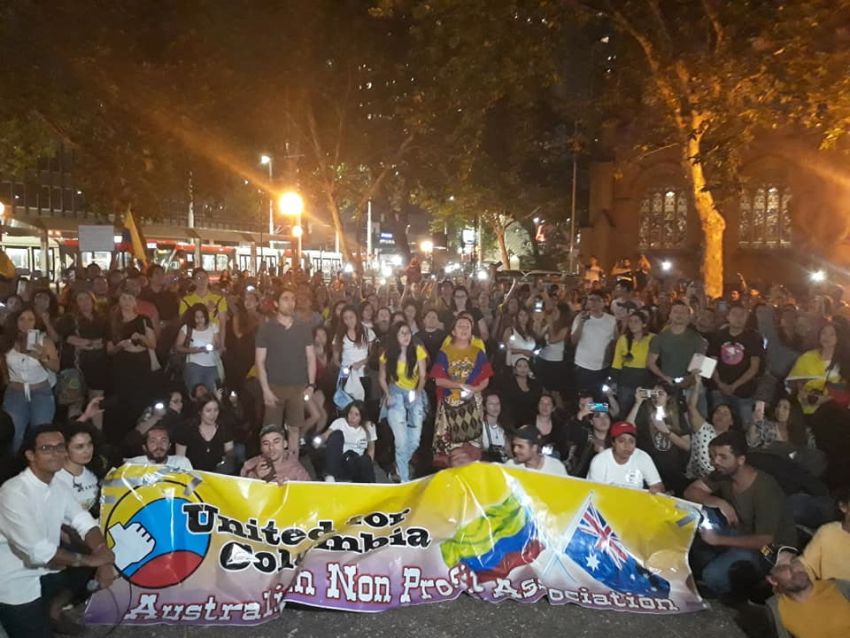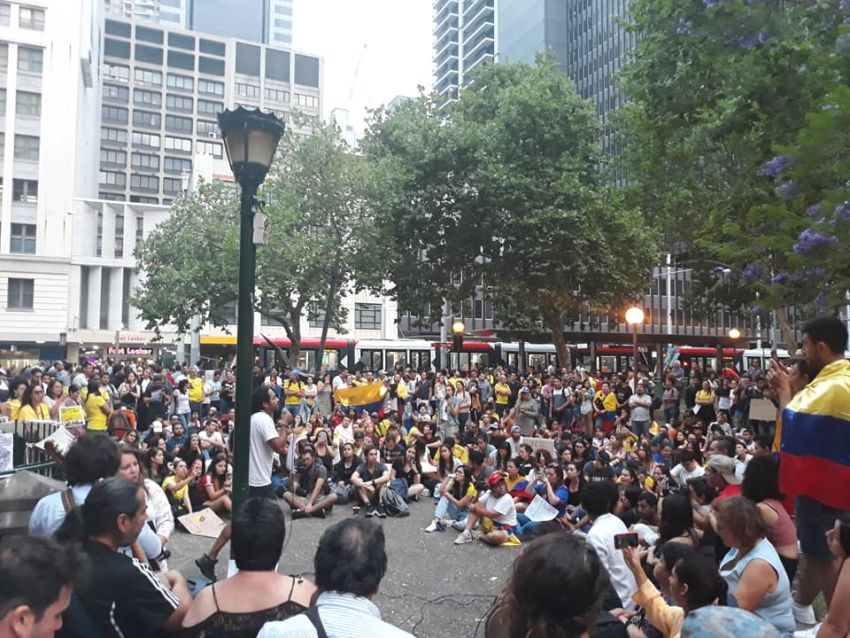 Members of Sydney's Colombian community and supporters gathered at Town Hall Square on November 21 to show solidarity with the National Strike set to take place later that day in Colombia.