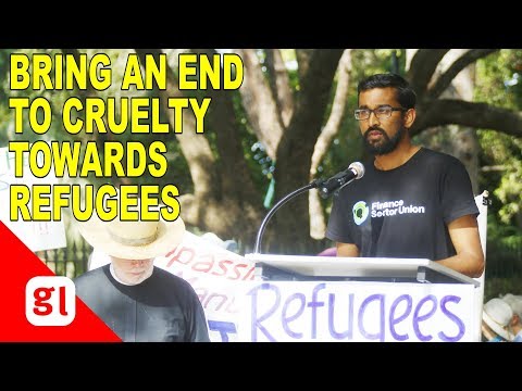 Aran Mylvaganam from the Tamil Refugee Council speaking at the Brisbane Palm Sunday rally 14 April 2019.