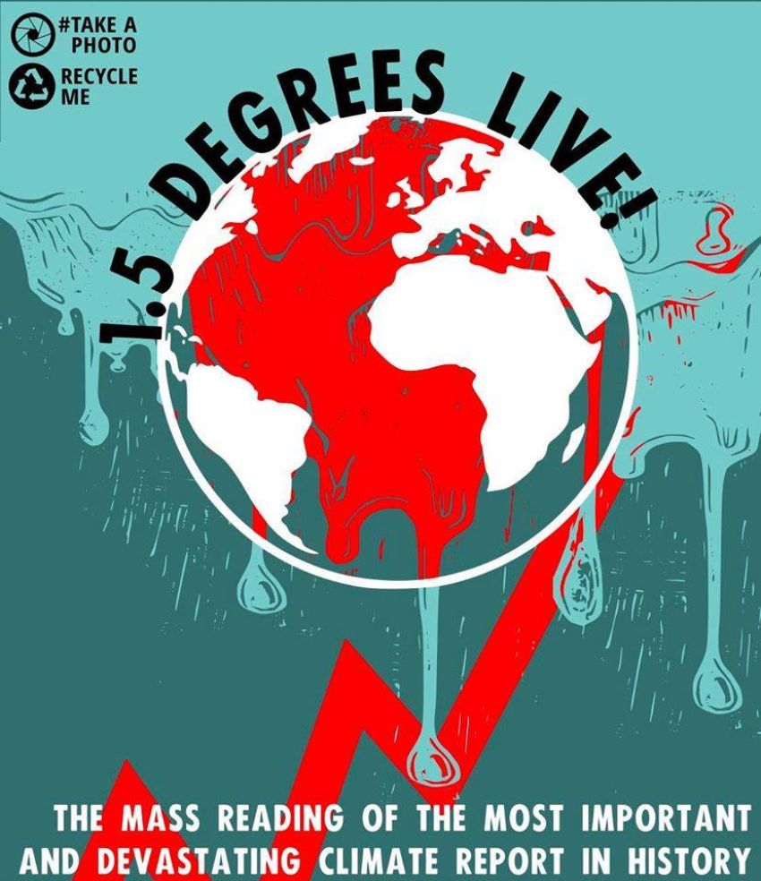An unauthorised performance called '1.5 Degrees' - a reading over multiple nights of the 2018 IPCC report that first debuted at Edinburgh Fringe. Volunteer entertainers and readers engage with audiences outside the Woodside Pleasure Gardens for 10 nights throughout the festival, reading, discussing and sharing the science from the most important document written on climate change. from 6:30pm to 8:30pm Thursday, Friday, Saturday and Sunday nights from the 17th until February 10th. (may end sooner or later. When we have finished reading, it's done)