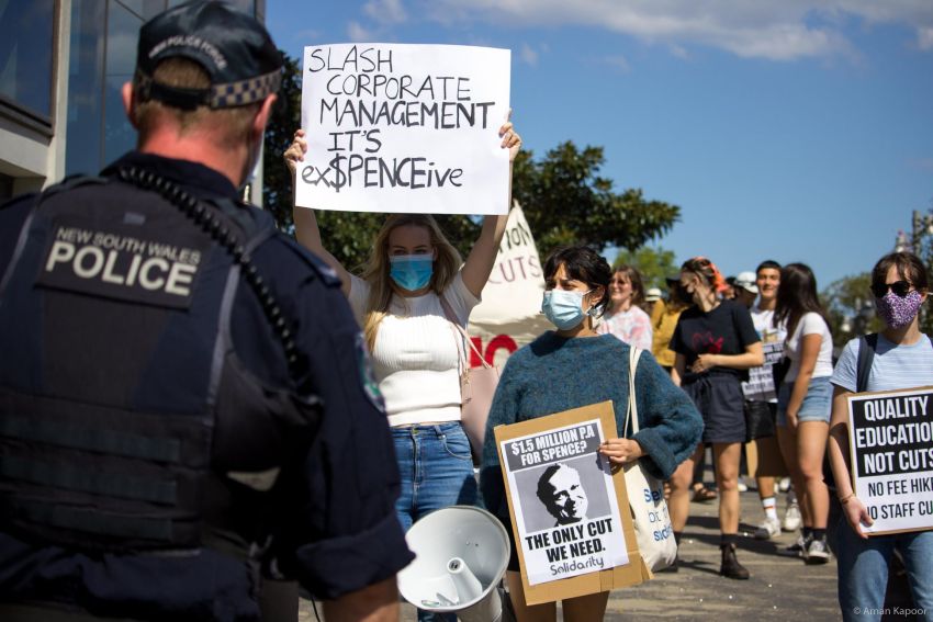 Staff and students efforts to protest the federal government’s refusal to help universities and the University of Sydney management’s job cuts on September 16 were thwarted by NSW Police, who again used the pandemic as an excuse to stop people from exercising their democratic rights.