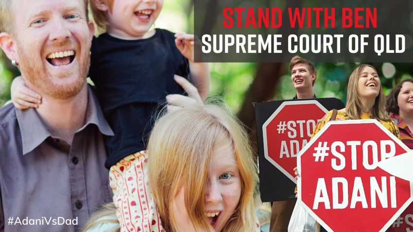 Join us outside court in your #StopAdani T-shirts with signs showing your solidarity and support for Ben - a Brisbane father who is standing up for all of our futures.