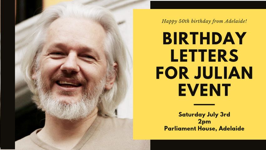 Please come past Parliament House on July 3rd at 2pm to send a personal birthday letter to Julian. All stationery and stamps will be provided, and we will be there to guide you through the (strict) criteria. We will post your letter that day and it will be on it's way to Belmarsh!