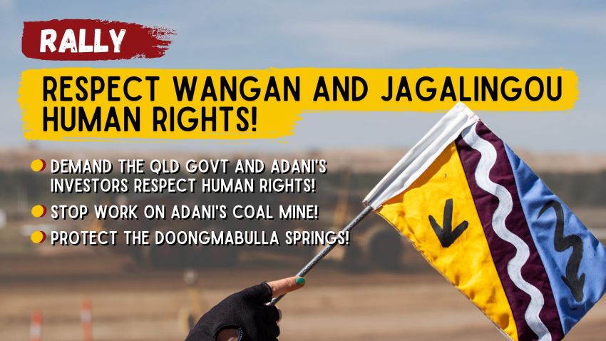 Wangan and Jagalingou Traditional Owners are calling on you to stand in solidarity with their call to respect their human rights! Adani’s destruction of the Wangan and Jagalingou lands, water, and culture is a violation of their human rights.
