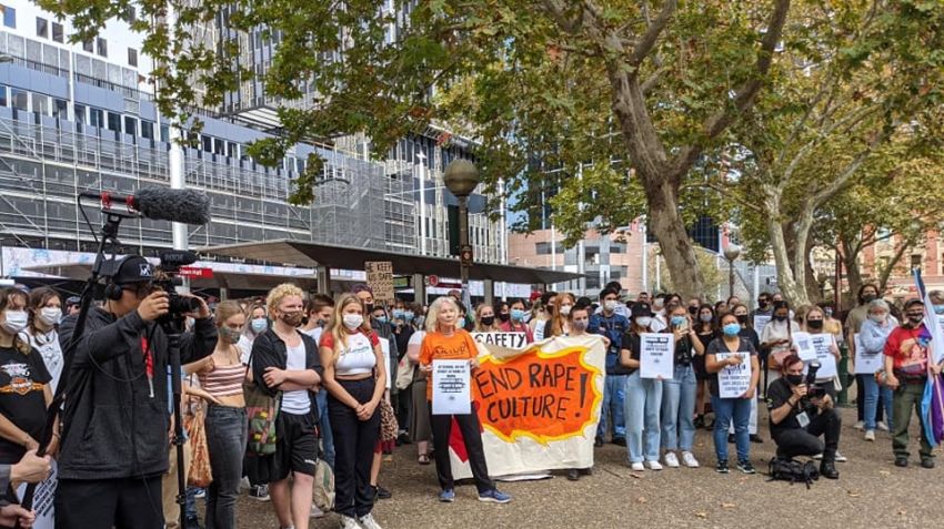 More than 100 people gathered at Sydney Town Hall on May 8 to demand an end to sexism and justice for survivors.